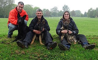 The pups pictured above Bob, Bevin and Bernie are now 5 and a half months old and are all doing extremely well. We have been preparing them for the Devon County show this week. They will be appearing with Billy and Jacque each day before the full Police dog display.